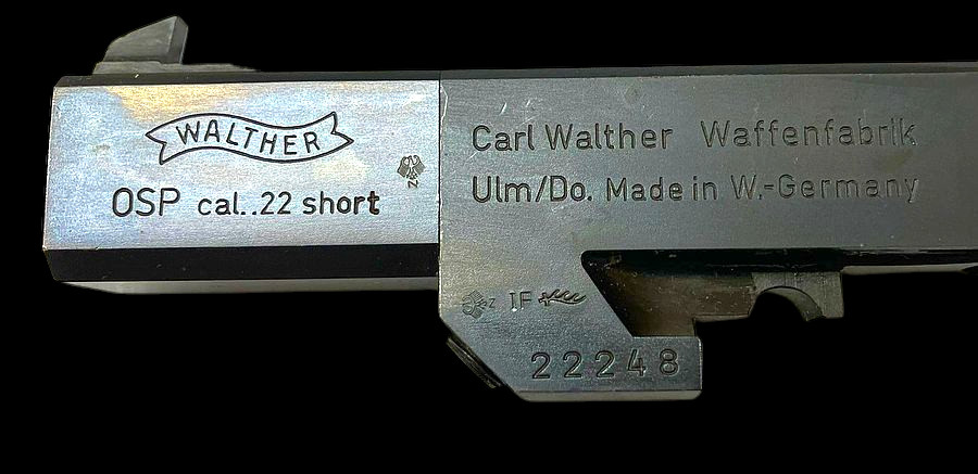 Gebrauchte Walther OSP im Kaliber .22 kurz, Ersatzbeschuss 1985.