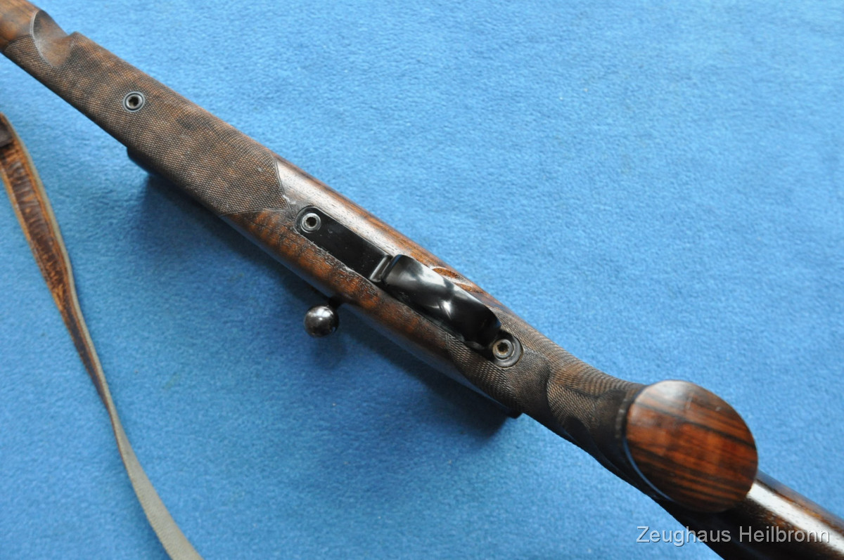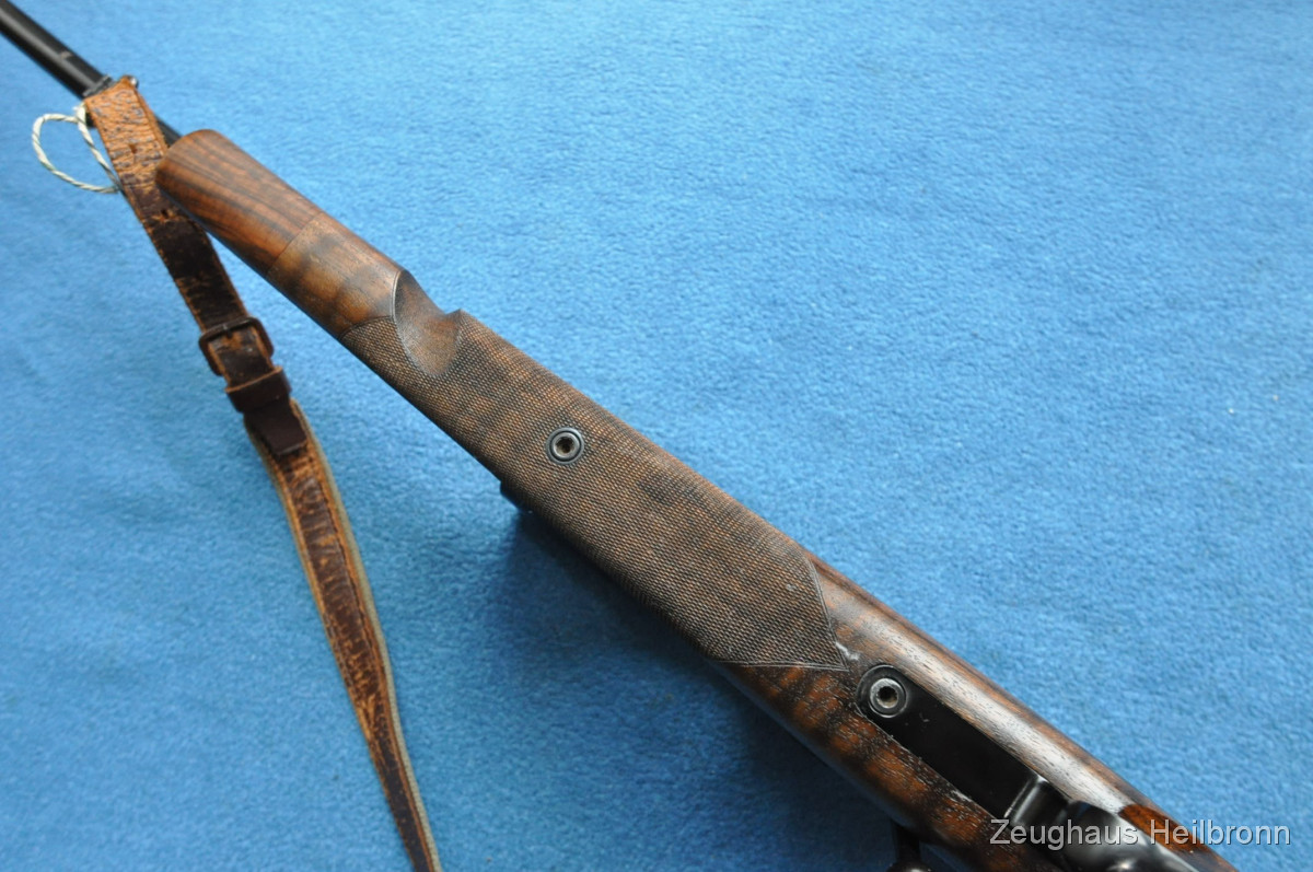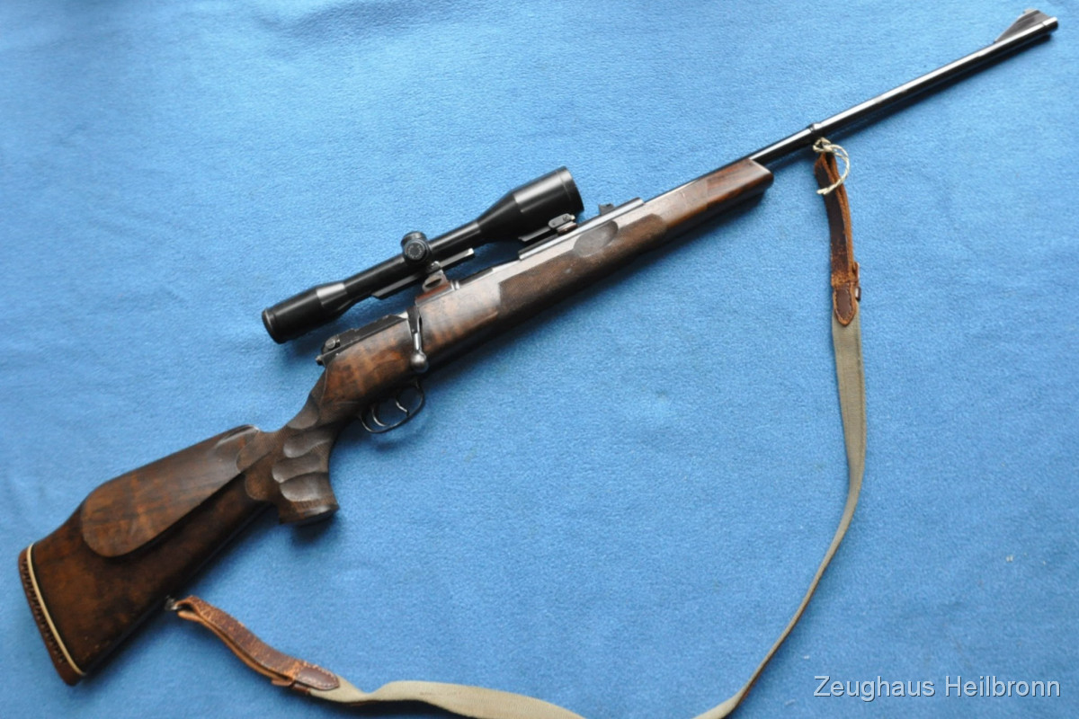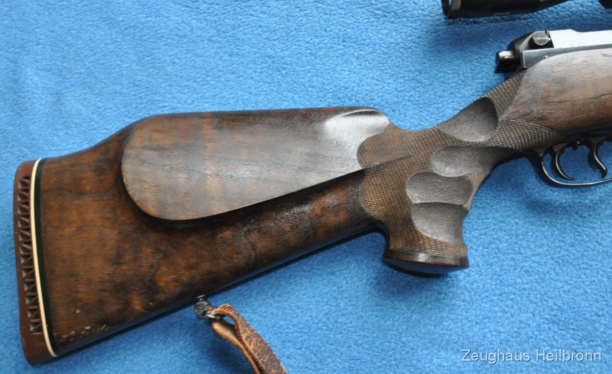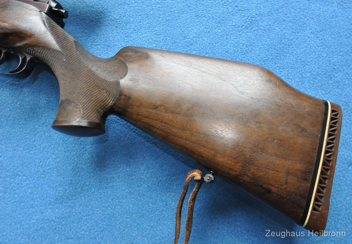Hier also eine echte Mauser: Legendäre Mauser 66 mit Gehmann System, natürlich Vollstahl, Waffe in einem schönen Zustand mit leichten Gebrauchsspuren, eine Stelle außen am Lauf leicht felckig, siehe Bilder, Lauf blank, volle mechanische Funktion. Der eigentliche rechts-Schaft ist durch Ausarbeitung der Handauflage auch als links-Schaft verwendbar.