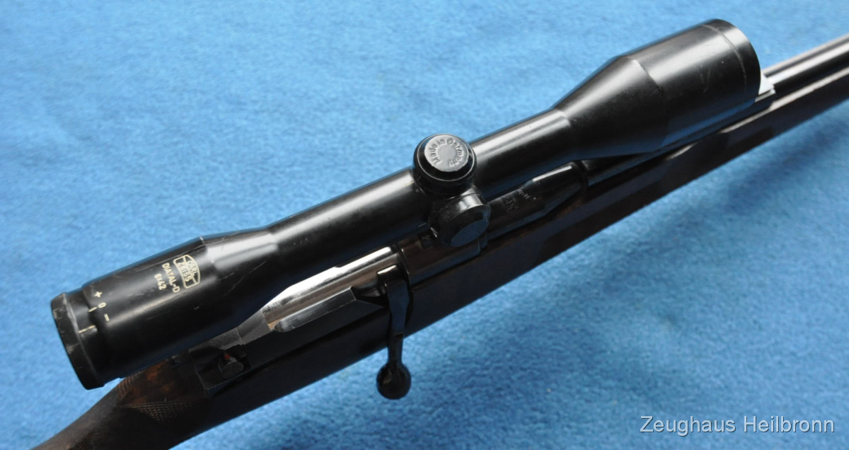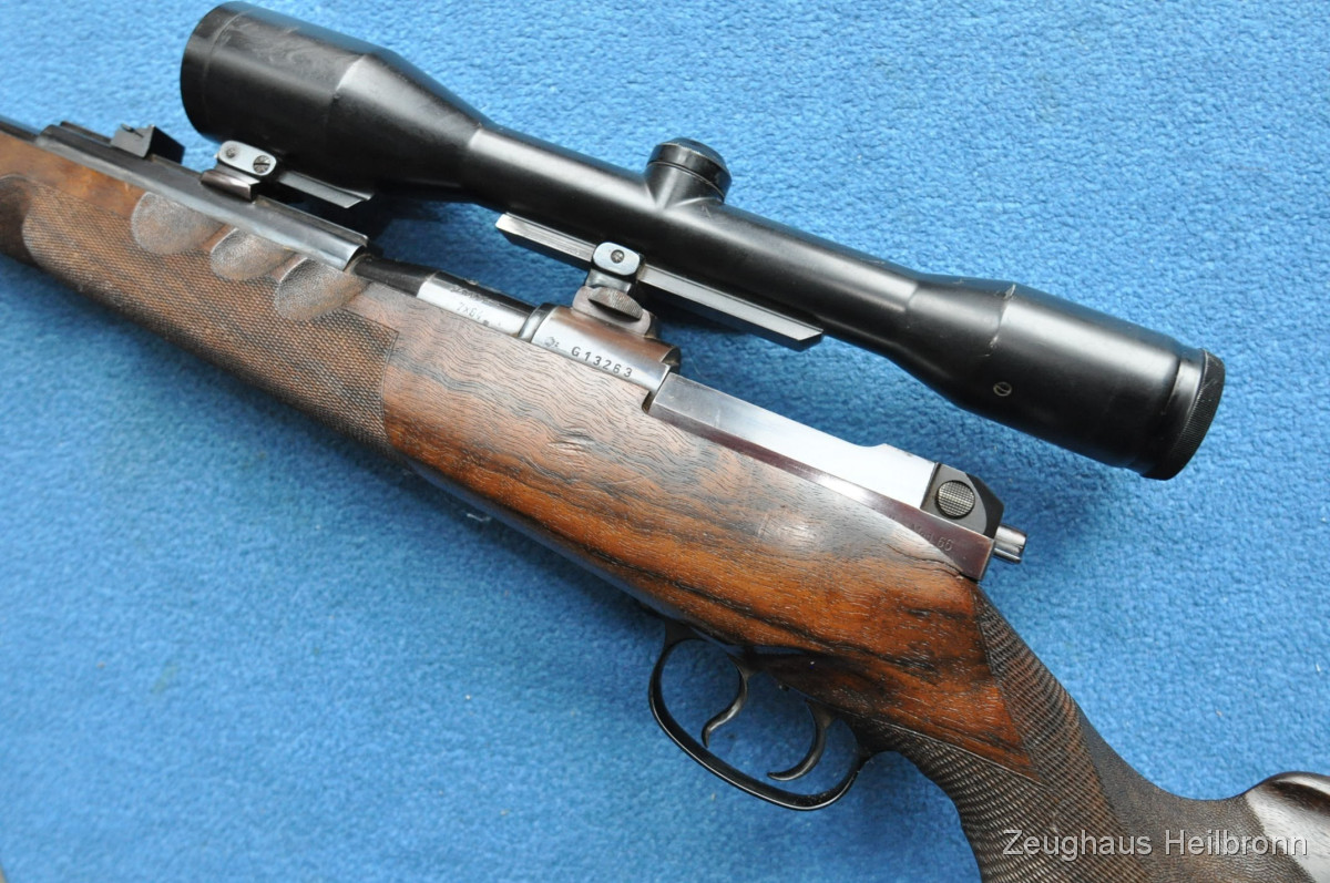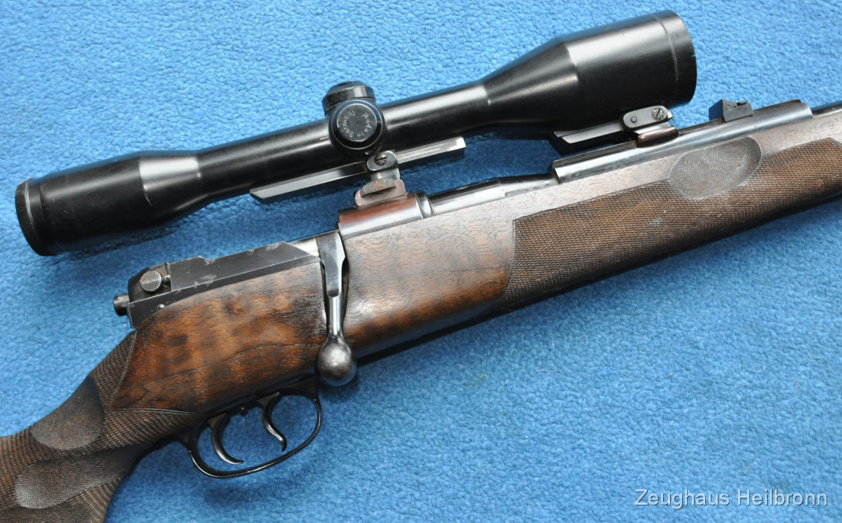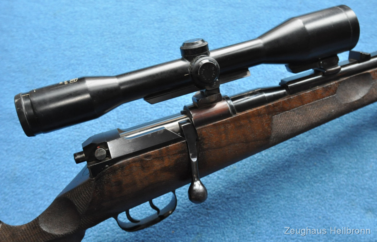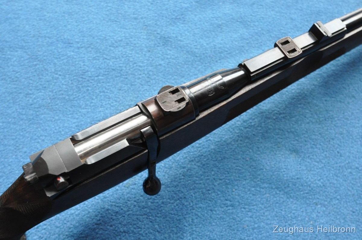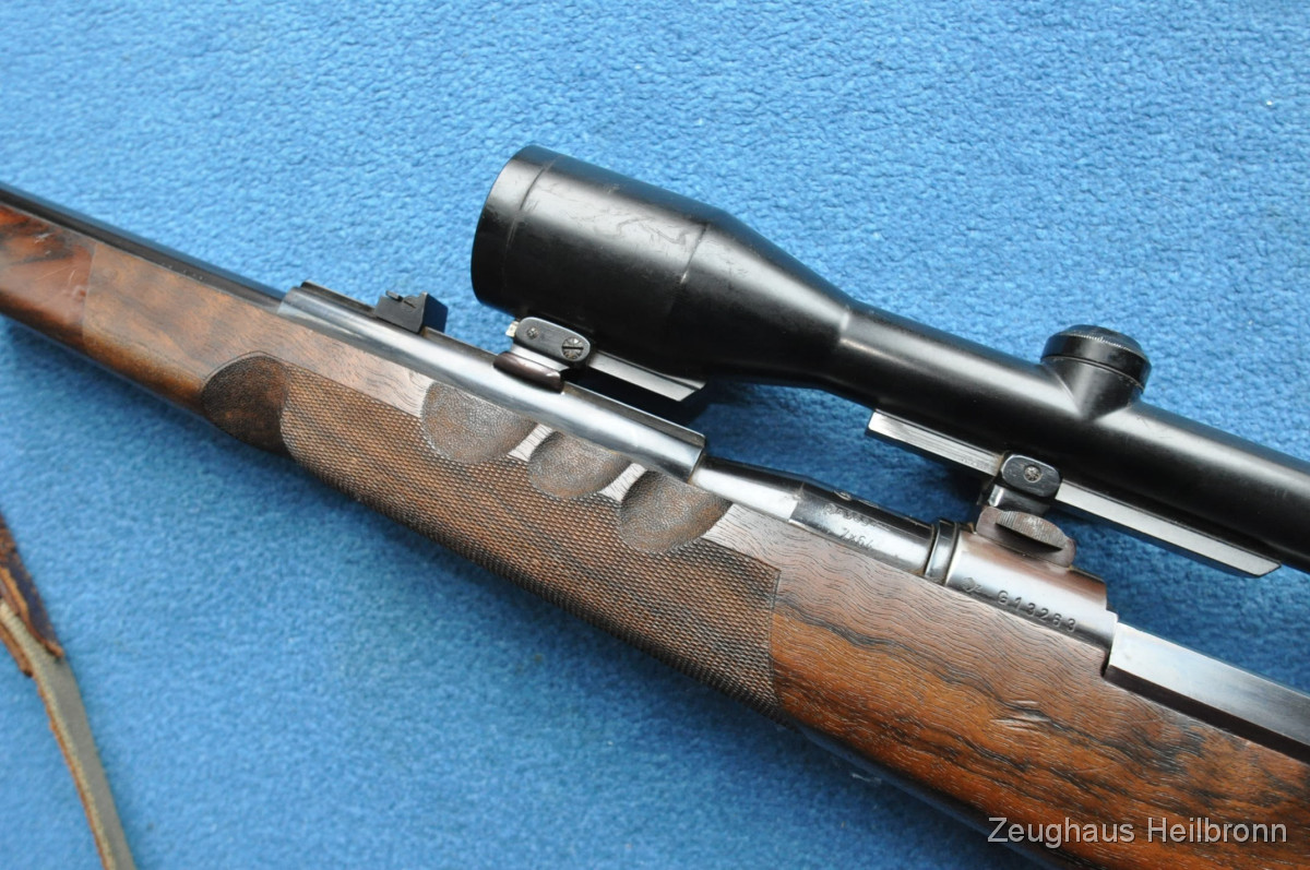 Hier also eine echte Mauser: Legendäre Mauser 66 mit Gehmann System, natürlich Vollstahl, Waffe in einem schönen Zustand mit leichten Gebrauchsspuren, eine Stelle außen am Lauf leicht felckig, siehe Bilder, Lauf blank, volle mechanische Funktion. Der eigentliche rechts-Schaft ist durch Ausarbeitung der Handauflage auch als links-Schaft verwendbar.