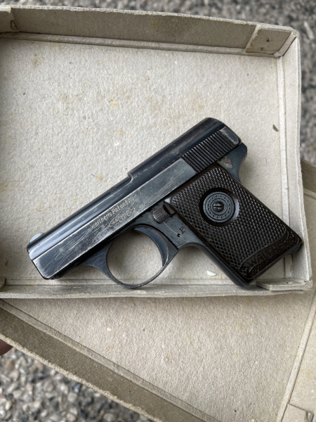 originale Walther Mod. 9, Kaliber 6,35, Beschuss Krone über N, Lauf auch gut, aus Sammlungsauflösung, siehe Bilder