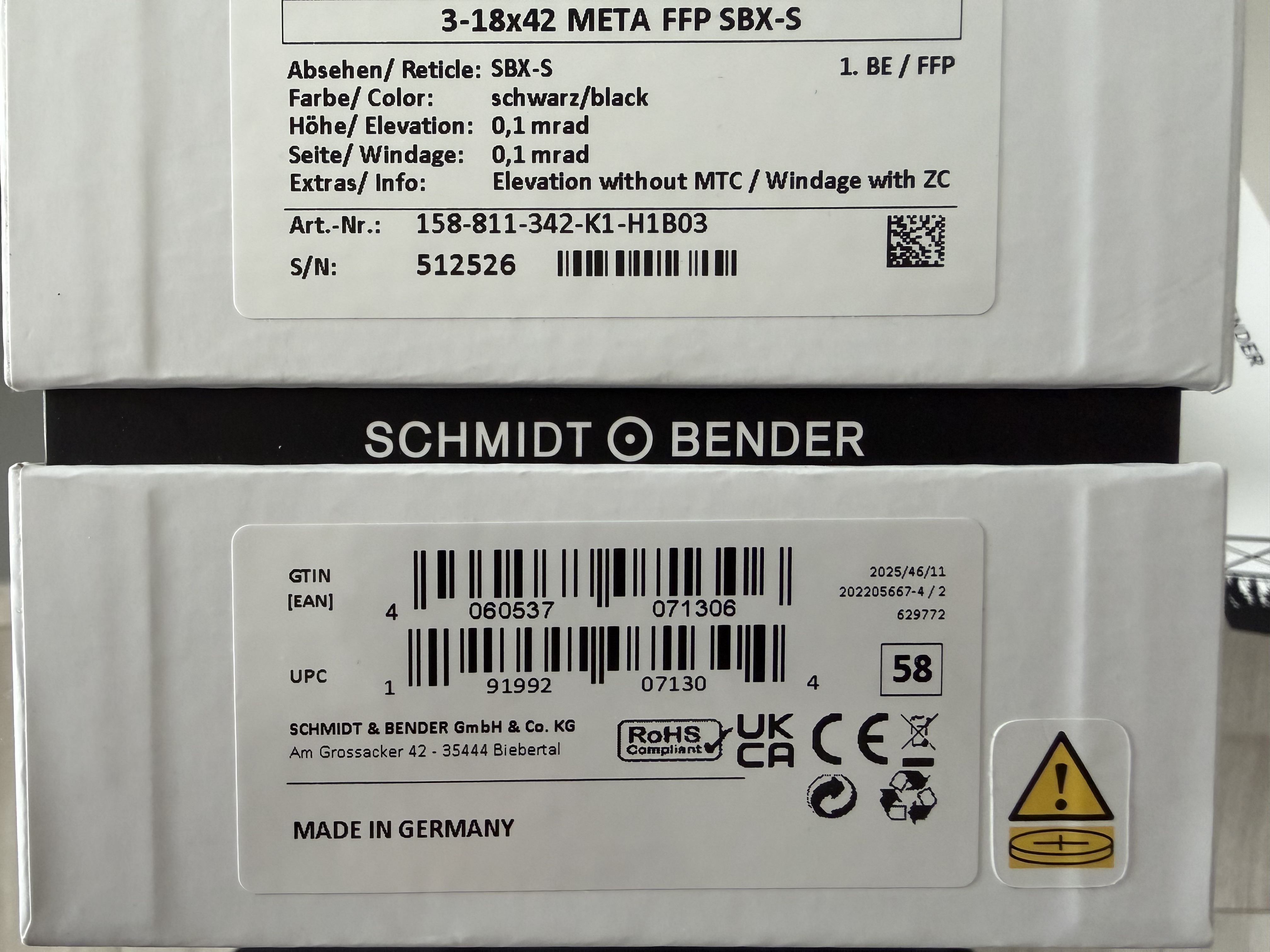 Zum Verkauf steht ein Schmidt & Bender META 3–18x42 Zielfernrohr in der 1. Bildebene (FFP) mit SBX-S Absehen. Das META ist die aktuelle High-End-Generation von Schmidt & Bender und steht für kompromisslose Mechanik, exzellente Optik und höchste Fertigungsqualität – Made in Germany. Kauf am 01-12-2025.