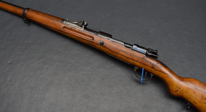 Nußbaumschaft mit Stahlschaftkappe . Lauf matt, Brünierung 97%, Schaft gut