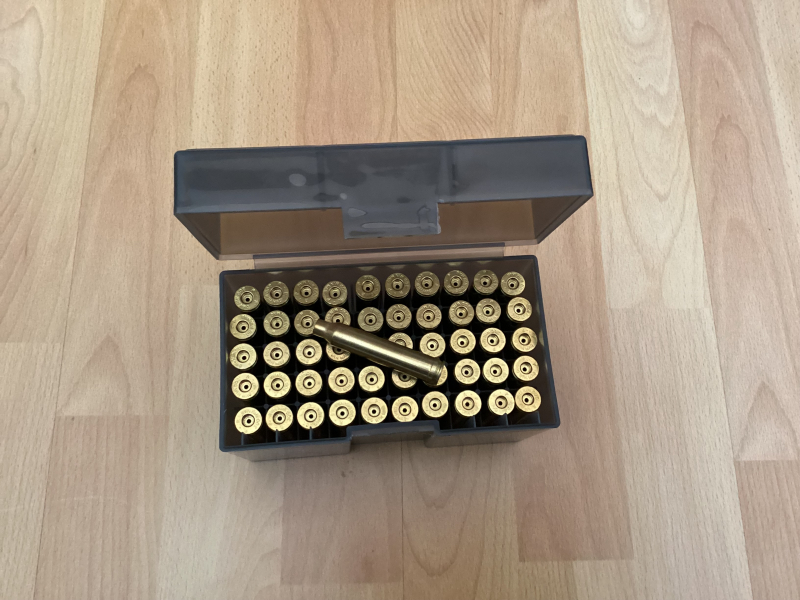 Biete hier 50 neue Hülsen im Kaliber .300 Winchester Magnum mit Munitionsbox von Frankford Arsenal an.