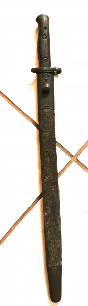 Sie bieten auf ein Bajonett Britisch MK2 .Zustand der Scheide Leder Metall alter entsprechend. Bajonett würde ich mit gut bezeichnen.