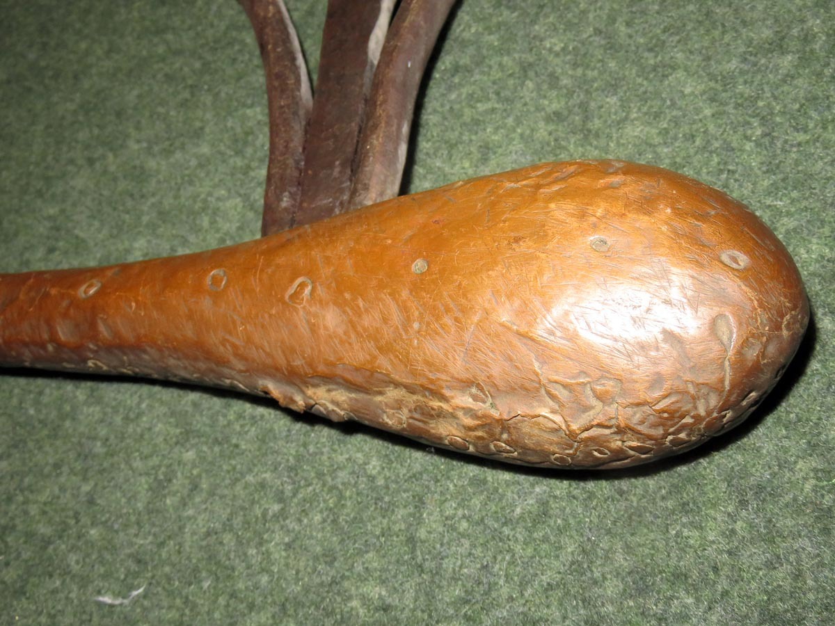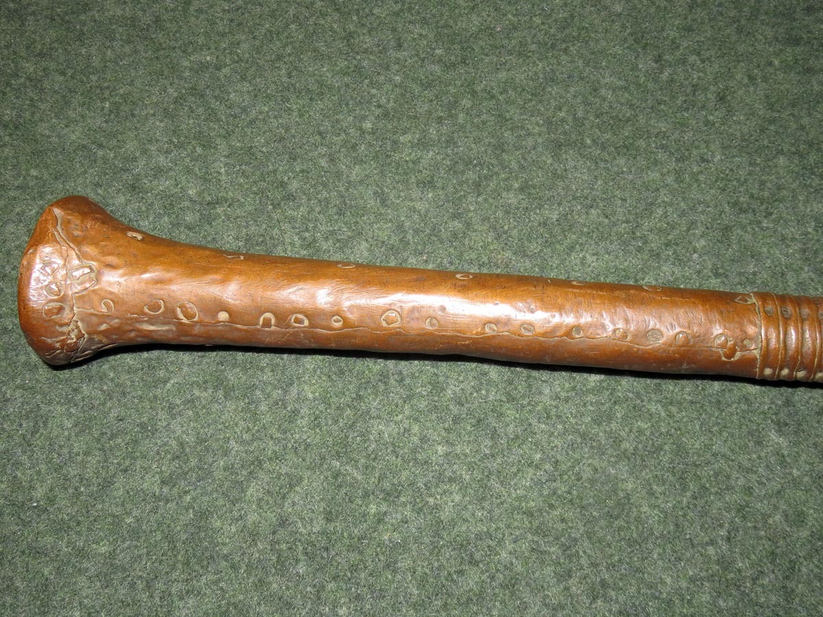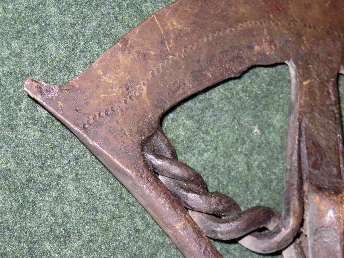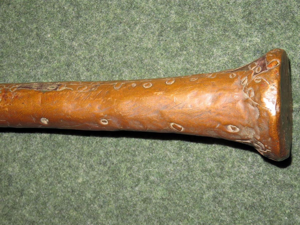 Das Beil ist eine aus Schmiedeeisen hervorragende Arbeit afrikanischer Handwerkskunst mit einem beschlagenen Griff aus verziertem Kupferblech.