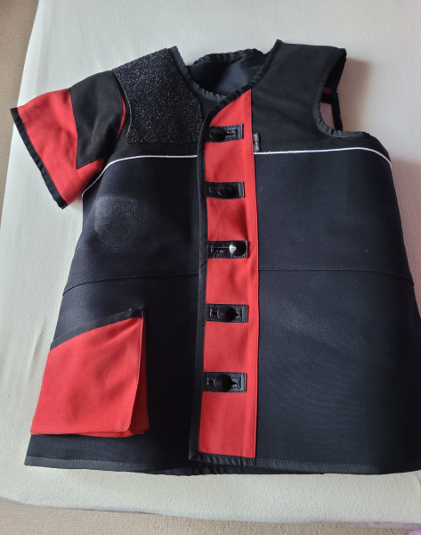 Hier wird eine Simetra Primofit 10 Schießsportweste in schwarz rot, Gr. 50 Ladies, geeignet für Auflagenschießen stehend rechts mit guter Passform verkauft. Die Original Rechnung vom 15.03.2025 ist vorhanden. Anprobe vor Ort ist möglich.
