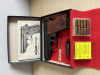 • Blaue Originalverpackung (Schachtel mit Prägung „SELBSTLADE-SIGNAL-PISTOLE RG 800“ und Krokoprägung)
