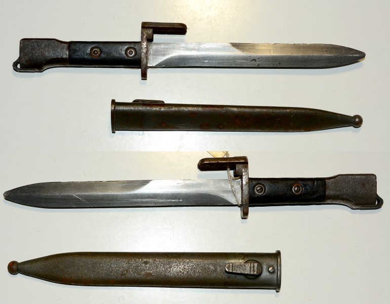 Belgisches FAL Bajonett Modell 1953, guter Zustand mit Gebrauchsspuren, mit Scheide