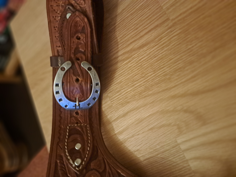 Es wurde eine neue stabile Metallschnalle angebracht in Form eines Hufeisen ( siehe Bilder ) was an dem Gürtel sehr gut aussieht. //