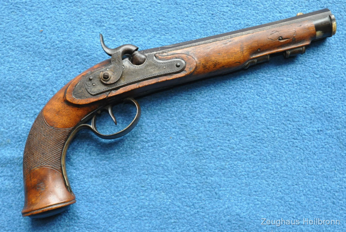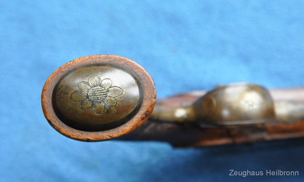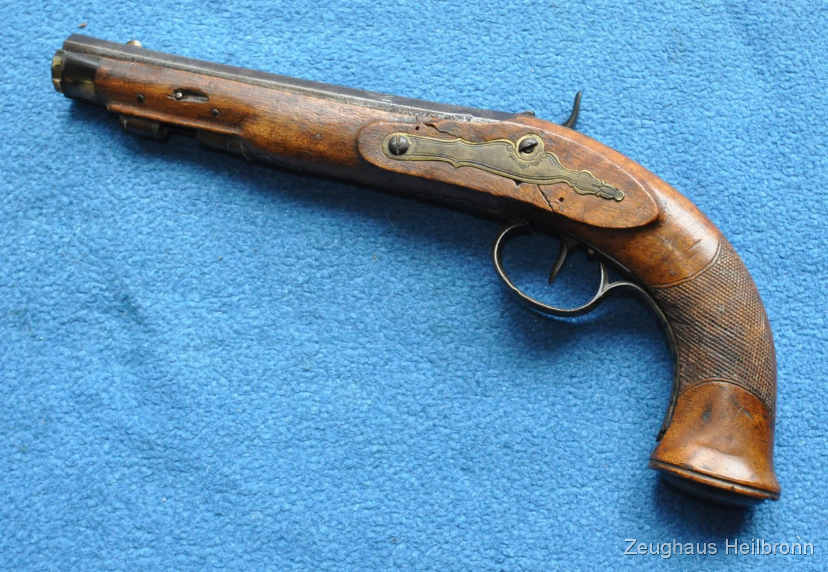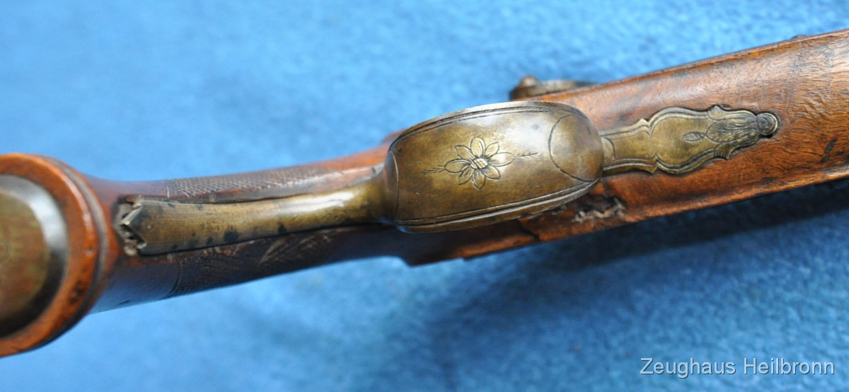 Gebraucht, siehe Bilder, Lauf glatt, innen gut erhalten. Hahn kann gespannt und abgeschlagen werden. Holz mit Riß, aber fest. Keinerlei Stempelung.
