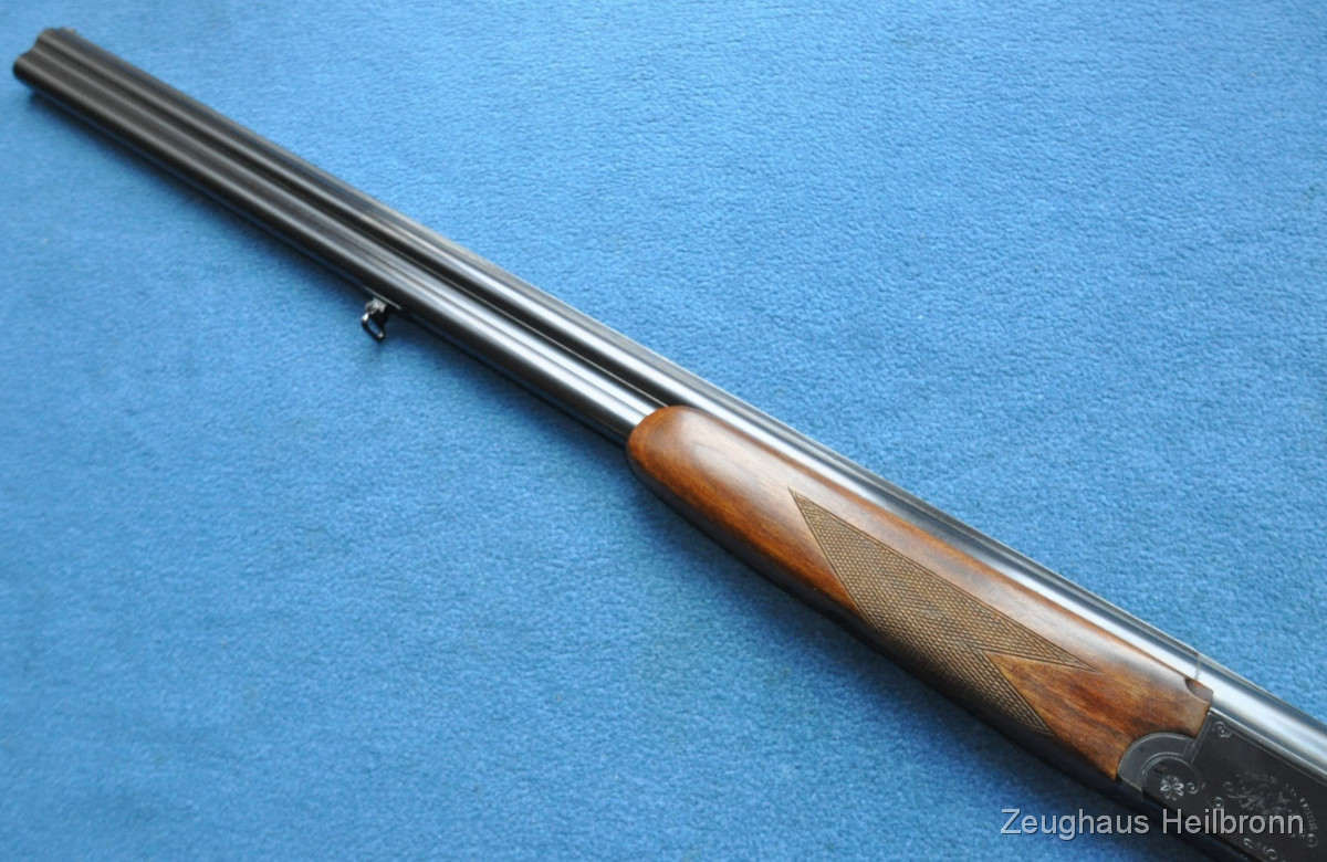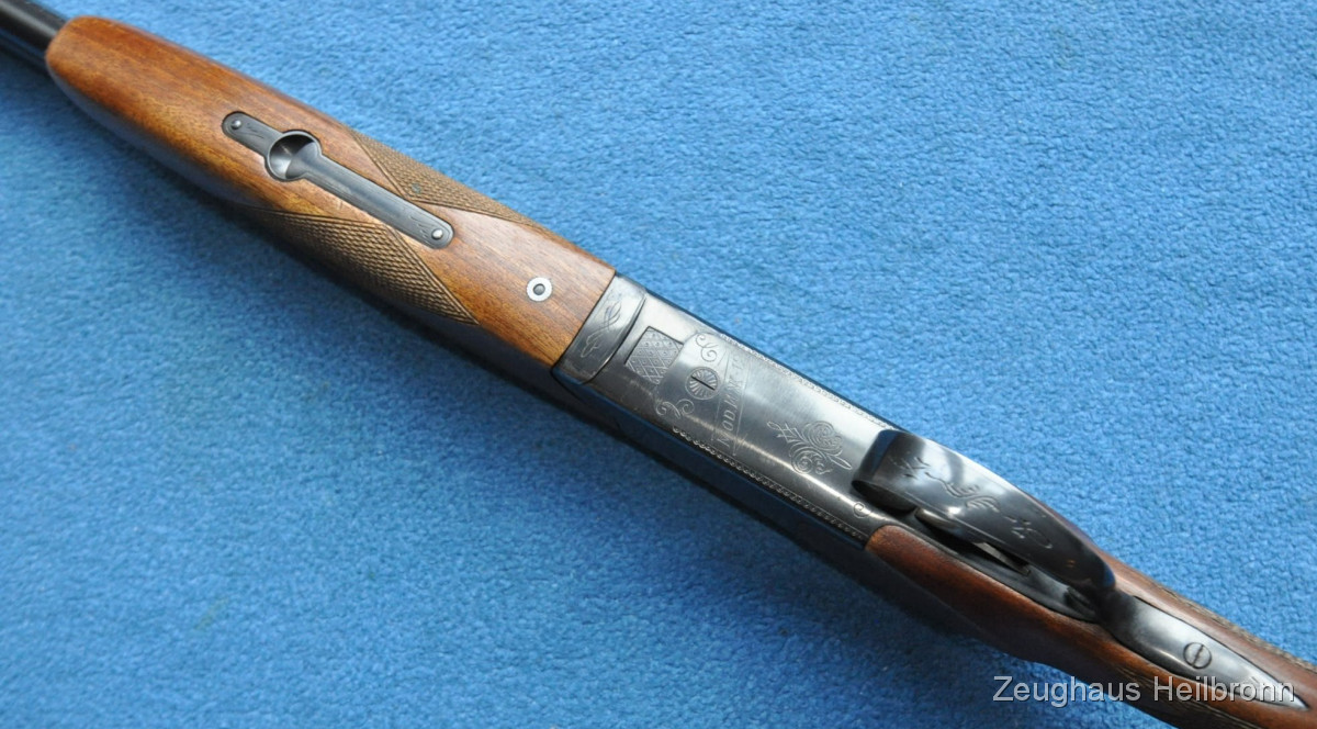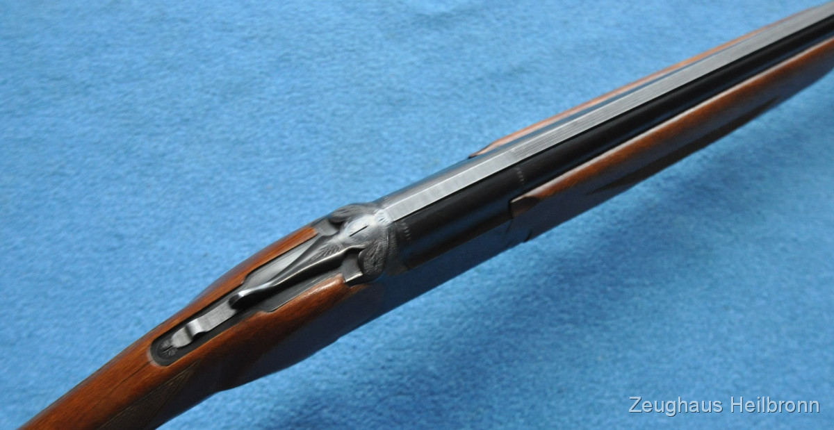 Waffe in einem sehr schönen Zustand, System dicht, Läufe blank. Schaft hinten unten mit Riss (siehe bilder), ist aber fest. Kein Ejector.