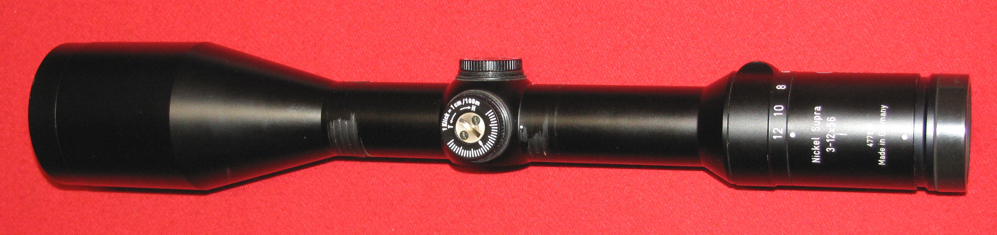 Zum Verkauf kommt ein ZF / Zielfernrohr, ein TOP NICKEL SUPRA 3 - 12 x 56 mit Sonderabsehen, siehe Bild
