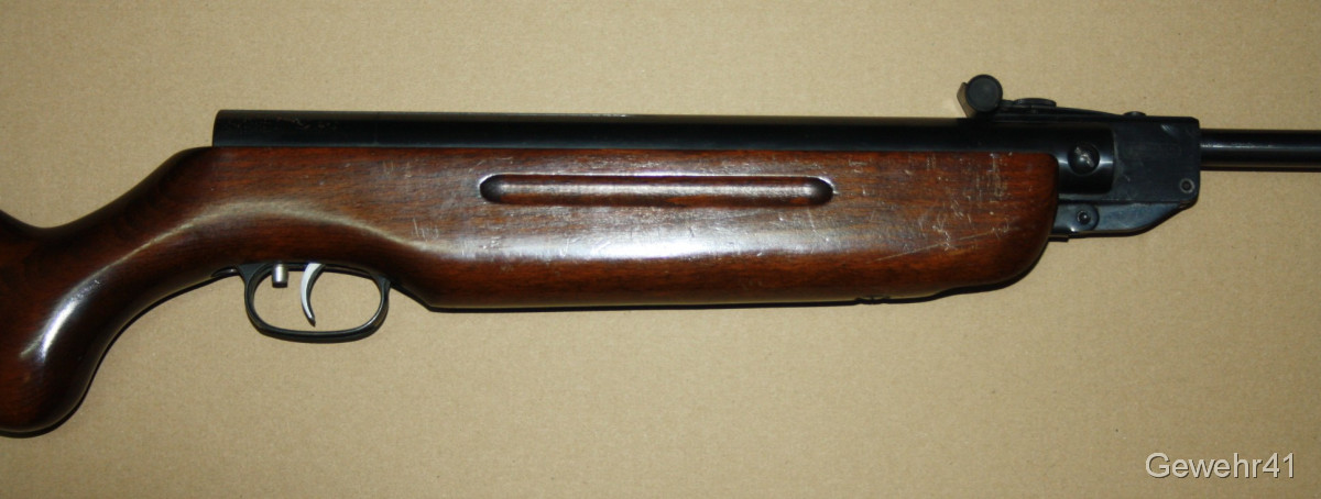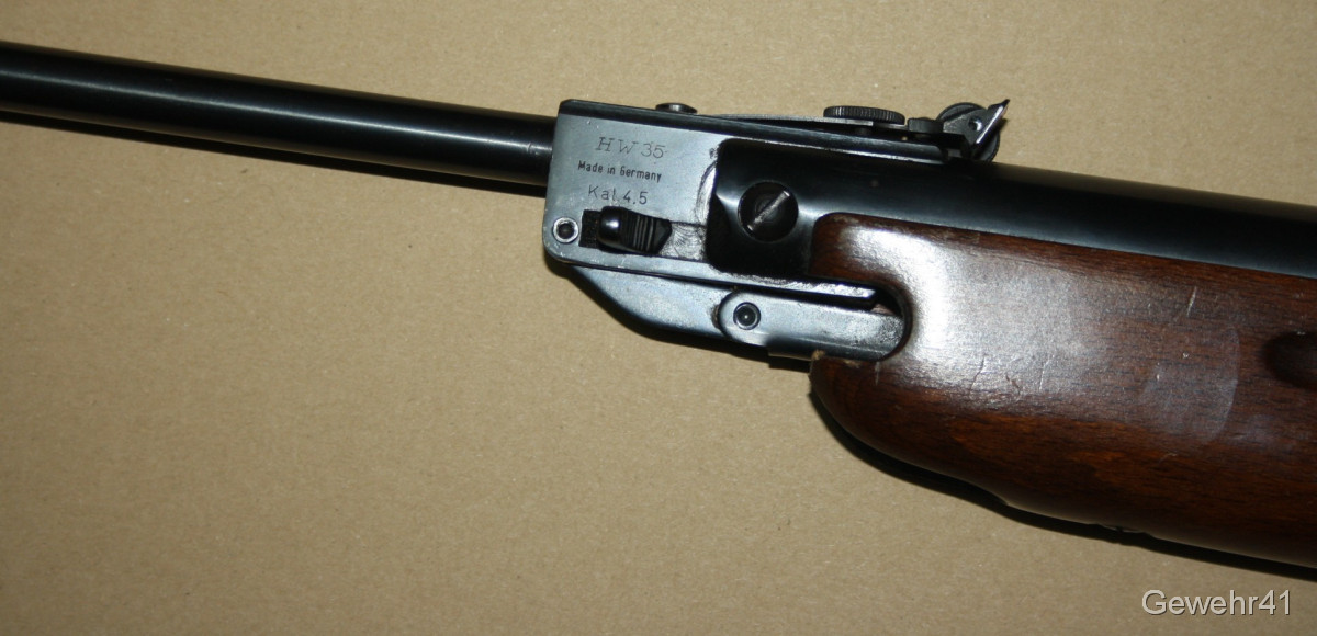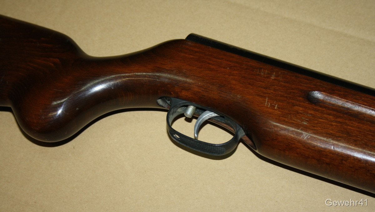 Sie bieten auf dieses frühe Luftgewehr von Weihrauch Modell HW35 im Kal. 4,5mm. Laut Seriennummer stammt es aus dem Jahre 1970 und funktioniert einwandfrei. Nur leichte, normal übliche Gebrauchsspuren. Der Vorbesitzer hat auf die Schaftkappe ein Gummi aufgeklebt. Aufgrund des Alters wird ohne Garantie und Gewähr verkauft.