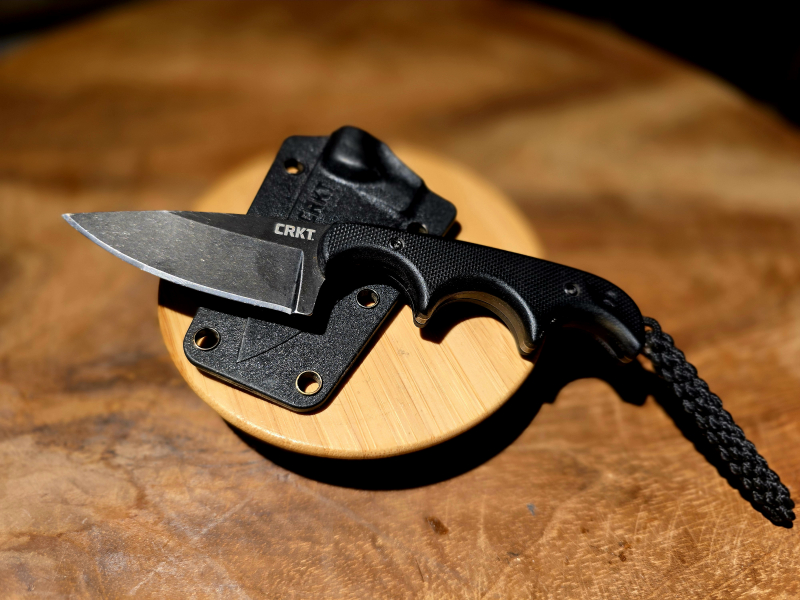 Zum Verkauf steht ein kompaktes feststehendes Messer CRKT Minimalist (Folts Design) in der Wharncliffe-Ausführung, inkl. originaler Scheide.