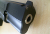 Brünierung rundum in sehr gutem Zustand mit nur ganz minimalen Gebrauchsspuren - nur rechtsseitig an der Mündung eine kleine Stelle, die schadhaft ist (letztes Detailbild).