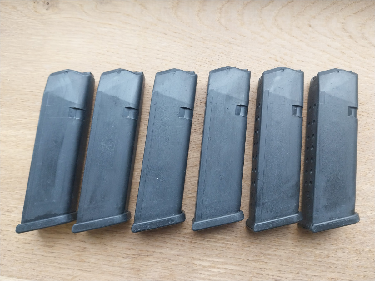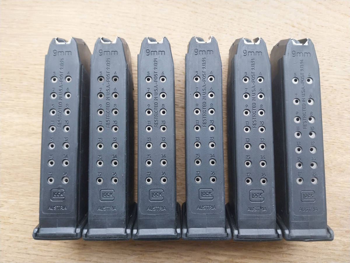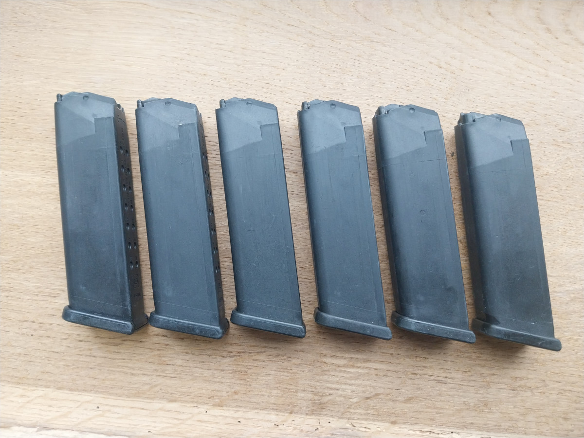 Zum Verkauf kommen meine 6 Glock 17 Magazine. Alle Magazine besitzen Gebrauchsspuren, sind aber zu 100% funktionstüchtig.