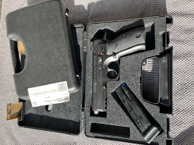 Zum Verkauf steht eine CZ75 SP-01 Shadow, 9mm Luger mit Wechselsystem Kadett 22LR sowie zweiter Visierung SPF. Lauflänge 5 Zoll, Für jedes Kaliber jeweils ein Magazin