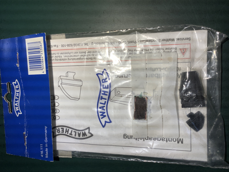Ich biete hier eine Höhen und Seiten verstellbare Kimme mit Korn von der Firma Walther zum Erwerb an, Dieses Paar passt genau auf eine Walther CP 88 /Co 2 /Compelition und ist im Handel nicht mehr zu bekommen Dies ist eine Privatauktion keine Garantie keine Rücknahme, bei Fragen bitte melden so nun viel Glück