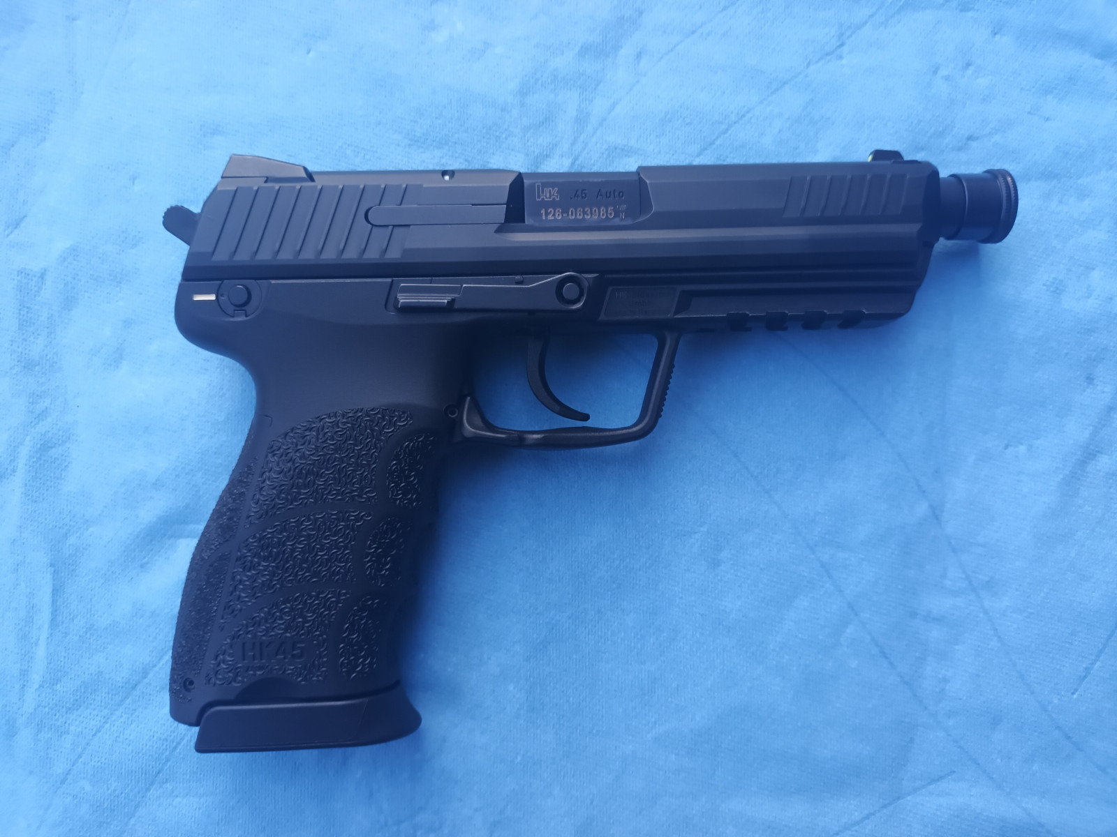 Hier haben Sie die Möglichkeit, eine Heckler und Koch HK45 Pistole im Kaliber .45 ACP zu ersteigern. Die Waffe wurde vom Vorbesitzer wenige Male geschossen, ist aber trotzdem in einem ordentlichen Zustand.