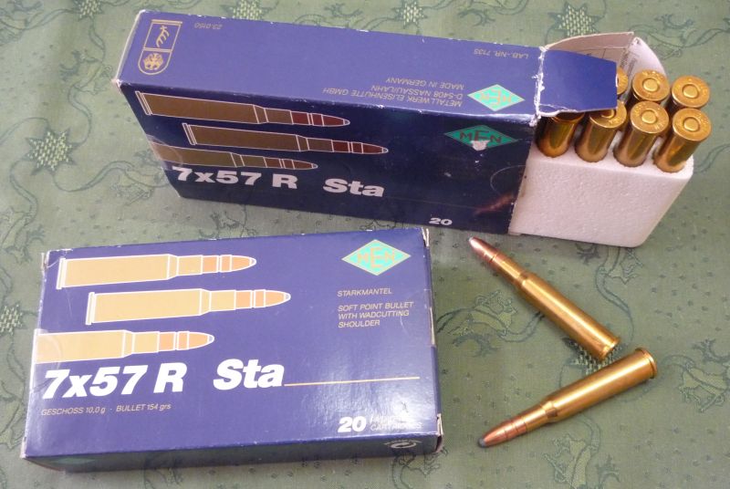 Sie bieten auf 34 Patronen im Kaliber 7 x 57 R von MEN - Metallwerk Elisenhütte.