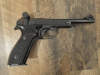 Sie bieten auf eine Halbautom. Pistole der Marke Margolin Kal. 22lr. 6 Zoll , mit Schlittenhaltehebel, Zustand ist gut, siehe Bilder. 1 Magazin und Original Holzwaffenkoffer,