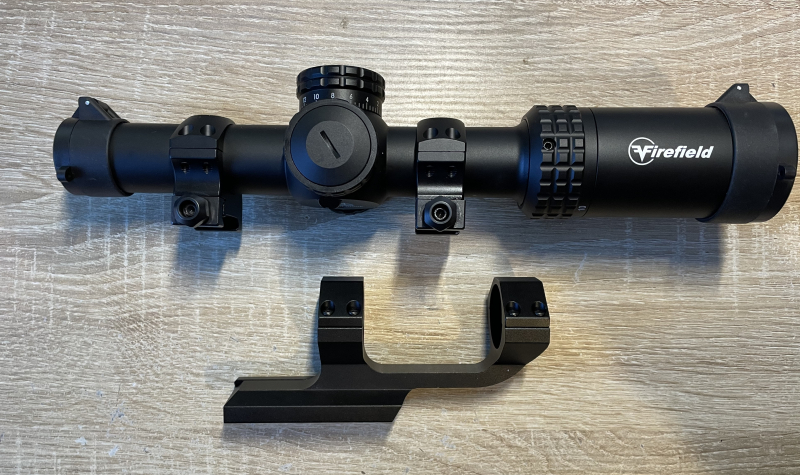 Ich verkaufe ein Firefield RapidStrike 1-10x24 Zielfernrohr inklusive der serienmäßigen Cantilever-Montage sowie zusätzlichen hochwertigen Element Optics Accu-Lite Montageringen in der Ausführung Medium. Das Absehen ist CR1 in der 2.Bildebene.