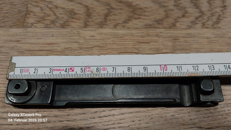 Zu Verkauf steht eine Picatinny-Schiene auf/für EAW aus Stahl, gebraucht, Länge ca. 14cm, Zapfen: Mitte zu Mitte: ca. 12cm,