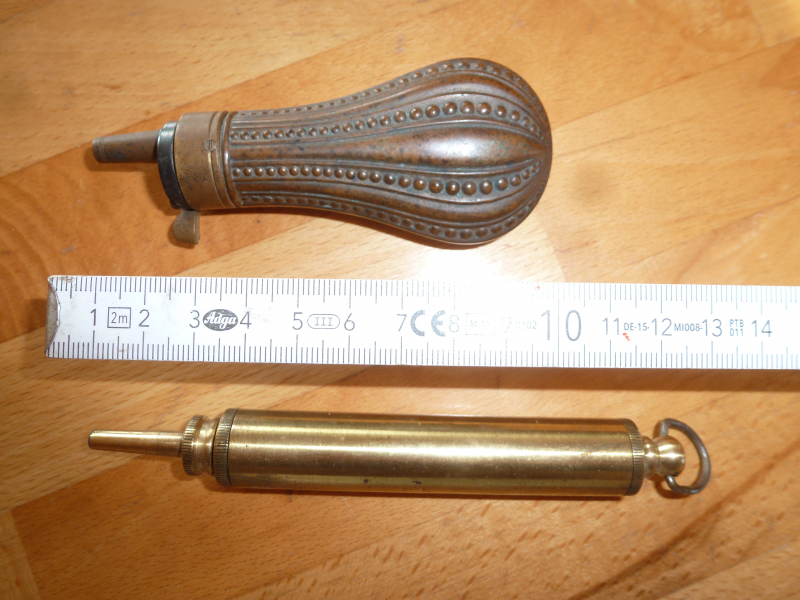 Verkaufe Kleine Pulver Flasche und Zündkraut Behälter . Gebraucht ( siehe Foto ) . Versand in das Ausland kann höher aus fallen . Keine Garantie .