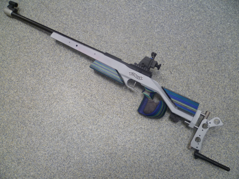 Schaftholz rundum gut, mit kleineren Rückständen entfernter Meisterschaftsaufkleberchen.