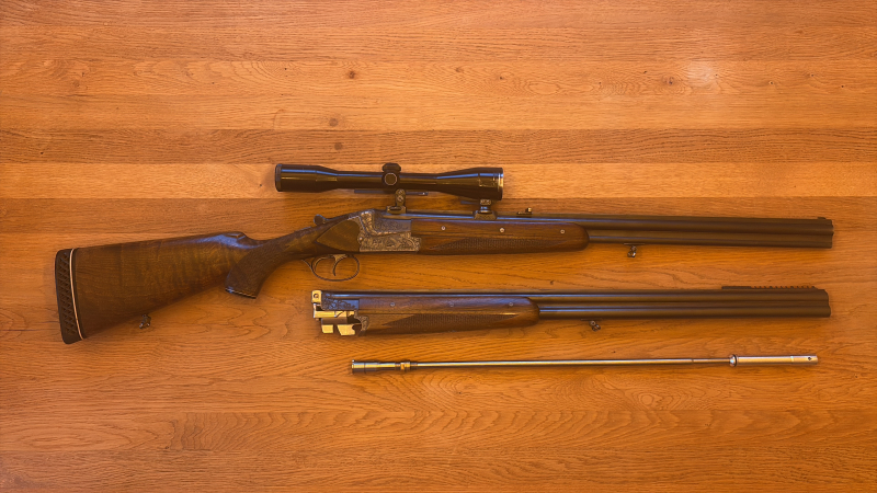 Bockbüchsflinte Ausgeliefert durch die BÜHAG/Suhl: Hersteller: Rolf Ziegenhahn,Kal.7x 57 R/16/70 Wechsellauf 16/16/70 Einstecklauf: Keppler Kal.5,6 x52 R Gebrauchtwaffe:Zustand sehr gut, Beschuss:4/85 ,Waffe im original Zustand,