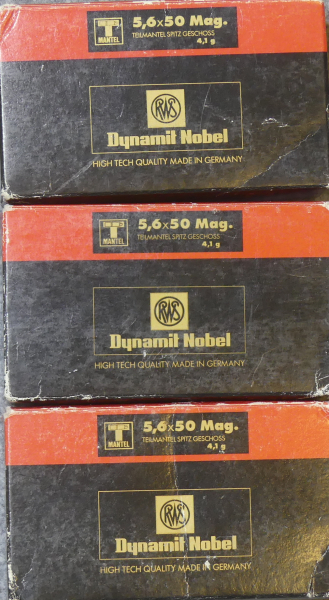 60 Schuß RWS 5.6x50 Mag. Telmantel Spitz 4,1g / 63gr ein Los