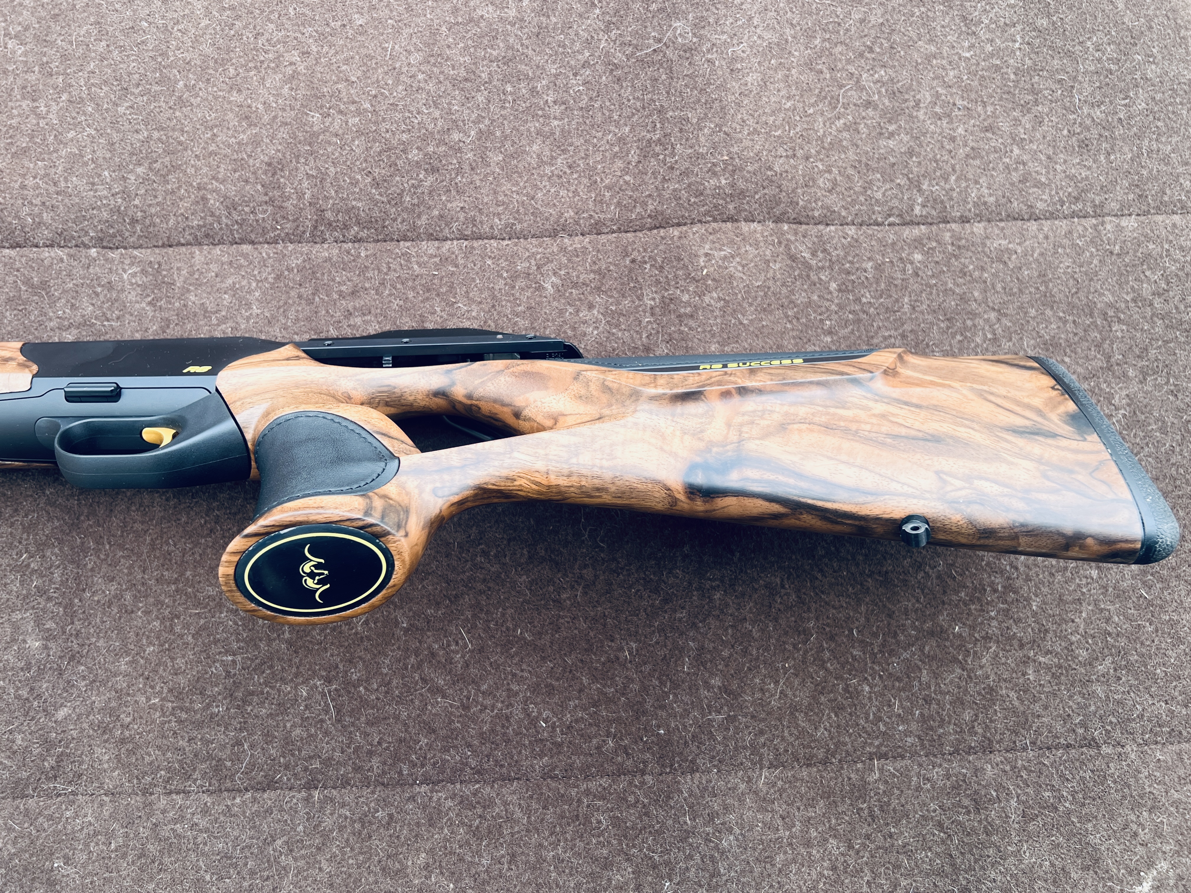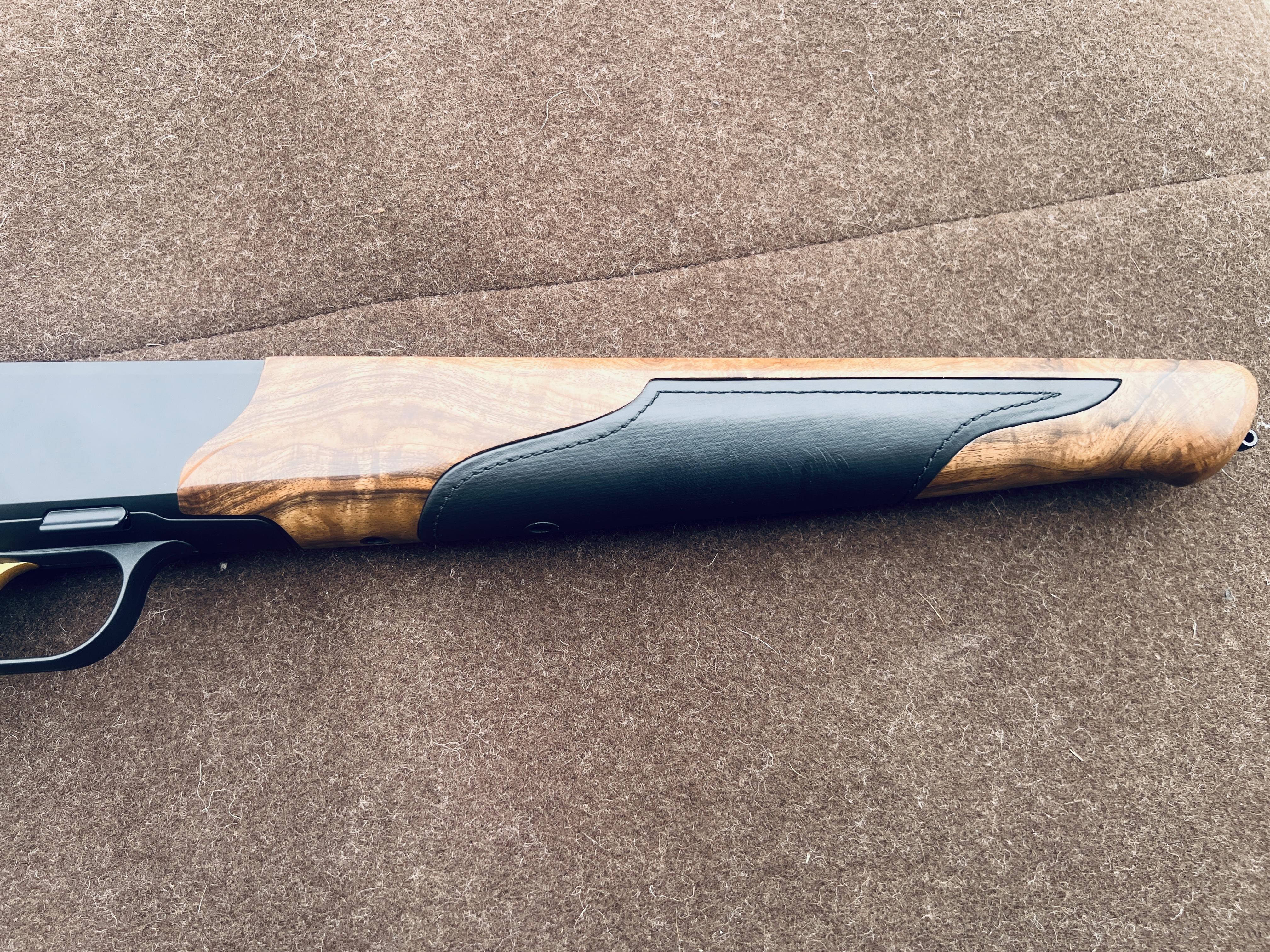 Sie steigern auf eine Blaser Custom Komplettierung Modell R8 in Holzklasse 7. Der Schaft ist original aus dem Blaser Custom Shop matt gehalten, die Ledereinlagen sind schwarz. Auf der Spanne des Hinterschaft ist aus dem Blaser Custom Shop "R8 SUCCESS" goldfarben eingelegt. Das Pistolengriffkäppchen hat einen goldfarbenen Argali. Die Kugel der Verschlussträger ist das Modell "Selous" von Blaser. Die Komplettierung hat ein super edles Erscheinungsbild in honigfarben/schwarz. Alle Komponenten sind individuell aufeinander optisch abgestimmt. Ein echtes Einzelstück von Blaser. Der Schaft hat Blaser Standardmasse und ist für Standardläufe ausgelegt. Selbstredend ist die Komplettierung von Blaser im Original nummeriert und in meiner WBK eingetragen. Die Komplettierung wurde im April 2024 gekauft, die Abzugseinheit sowie den Verschlussträger mit Selous Kugel im August 2024 und somit hat alles noch Garantie. Kleinere Lagerkratzer vorhanden. NP war in 2024 für diese Komplettierung 10.500€. Rechnungskopien werden beigelegt. Verkauf mangels Einsatzmöglichkeit. Die Versandkosten beziehen sich auf innerdeutschen Versand mit einem Waffenkurier. KEIN VERKAUF INS AUSLAND. Privatverkauf ohne Garantie und Rücknahme. Viel Spaß beim Steigern...