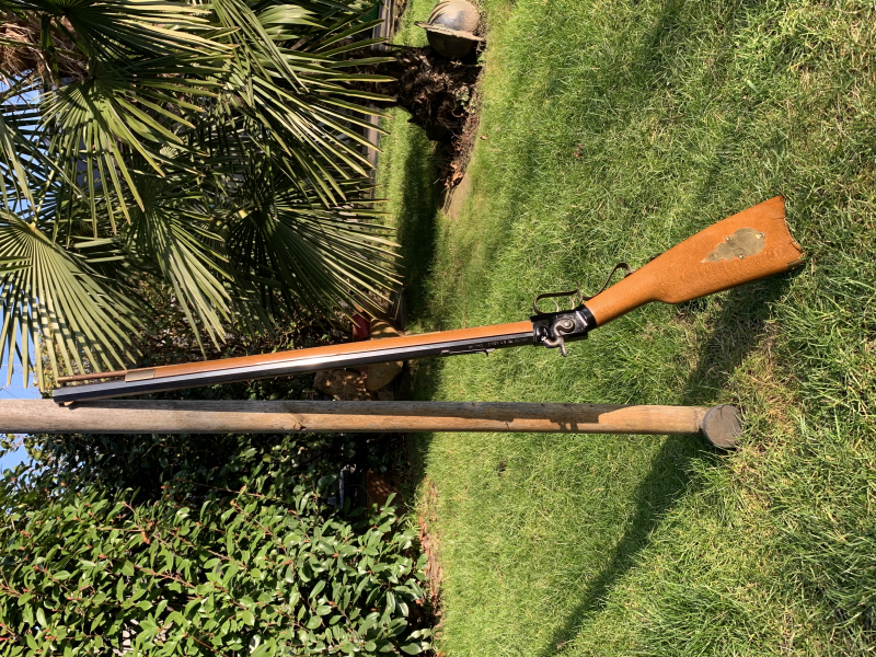 Sie bieten hier auf ein Vorderladergewehr im Kaliber 45 eines italienischen Herstellers im Kentucky Stil. Es hat einen Schwarzpulverbeschuss. Die Funktion ist gegeben. Das Gewehr stammt aus einem Nachlass. Züge und Felder sind deutlich zu sehen. Um Spaß mit Pulver und Blei zu haben, oder zu Dekozwecken gut geeignet. Für sportliche Leistungsansprüche eher nicht. Bei Fragen bitte melden.