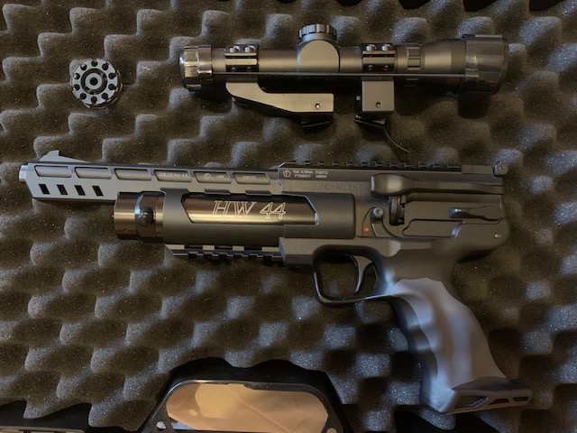 In dieser Auktion verkaufe ich meine Luftpistole Weihrauch HW 44 inklusiver Zielfernrohr Weihrauch 2x20. Der Kunstoffkoffer gehört auch mit zur Auktion. Siehe Bilder. Die Waffe wurde kaum verwendet (Nicht mal eine Diabolo Dose). Die Waffe ist sehr Präzise. Schussbild auf 25 Meter mit 10 Schuss (siehe Bilder).