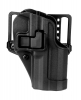 Ergonomisches Design und eine Oberfläche aus Kohlefaser ermöglichen extrem schnelles ziehen, verstauen und sichern der Waffe. Das patentierte SERPA Auto Lock™ System gewährleistet neben sicherer Anbringung und Zugriff eine verstellbare Gürtelaufnahme, verstellbaren Ziehwiderstand und Ziehwinkel. Zwei unterschiedliche Aufnahmen garantieren sicheres Verstauen der Waffe am Körper.