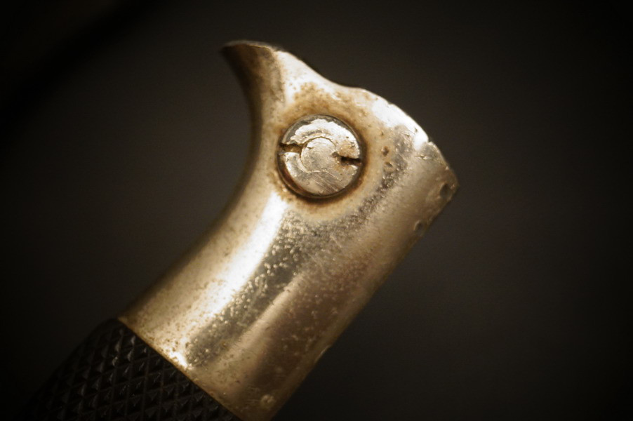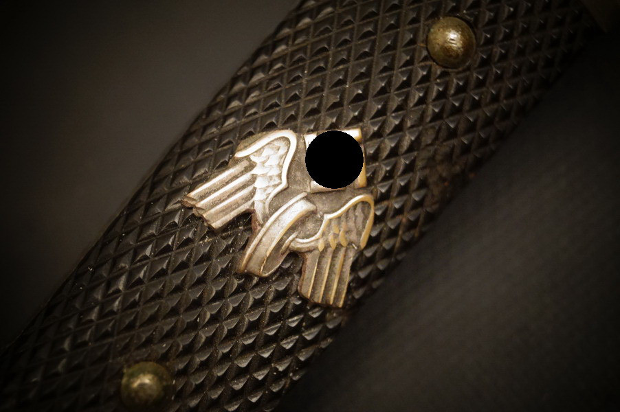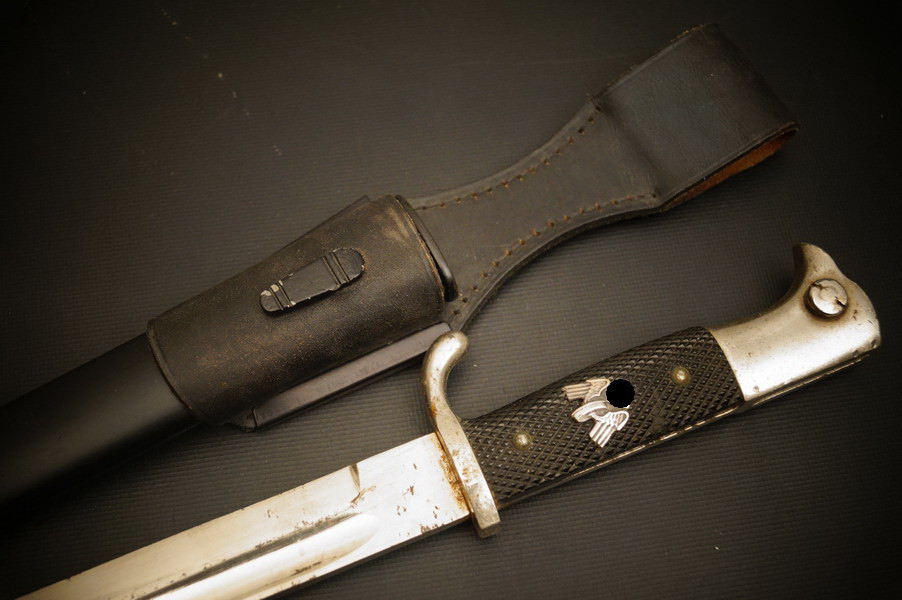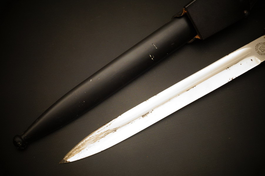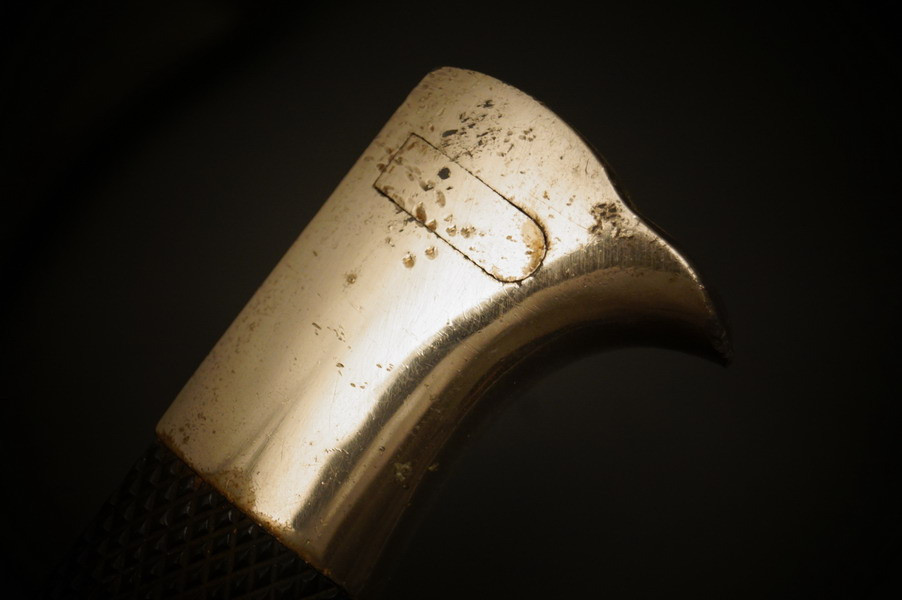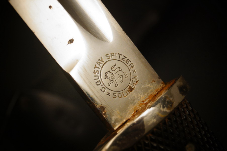 Fundzustand. Stahlscheide und Stahlklinge. Griffzeichen geprägt, versplintet.
