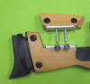 Für die Schaftbacke habe ich mir eine eigene Halterung angefertigt. Mit ihr ist eine einfache Höhenverstellung und ein komplettes Herausnehmen möglich. Die Schaftbacke ist dann nicht im Weg, wenn man zum Reinigen den Verschluss herausziehen muss.