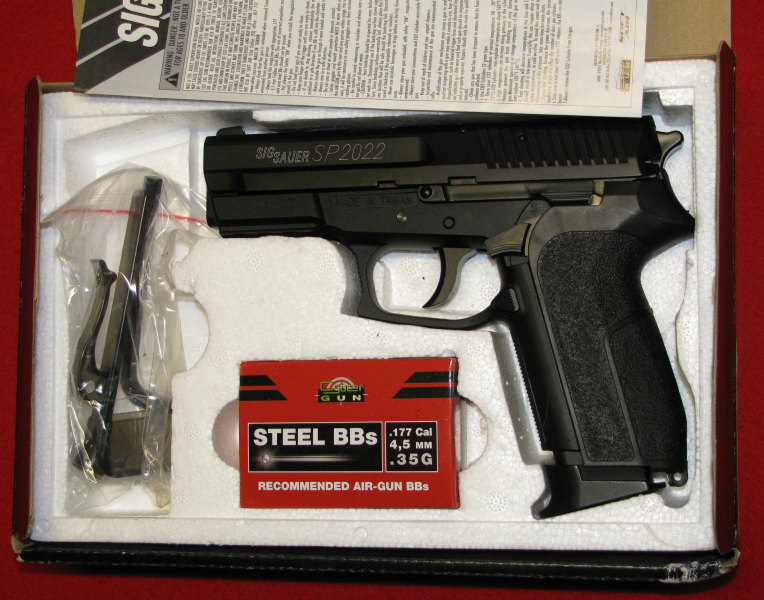 Zum Verkauf kommt, ein älteres Model SIG SAUER SP 2022, in cal. 4,5mm BB mit F - Zeichen / defekt