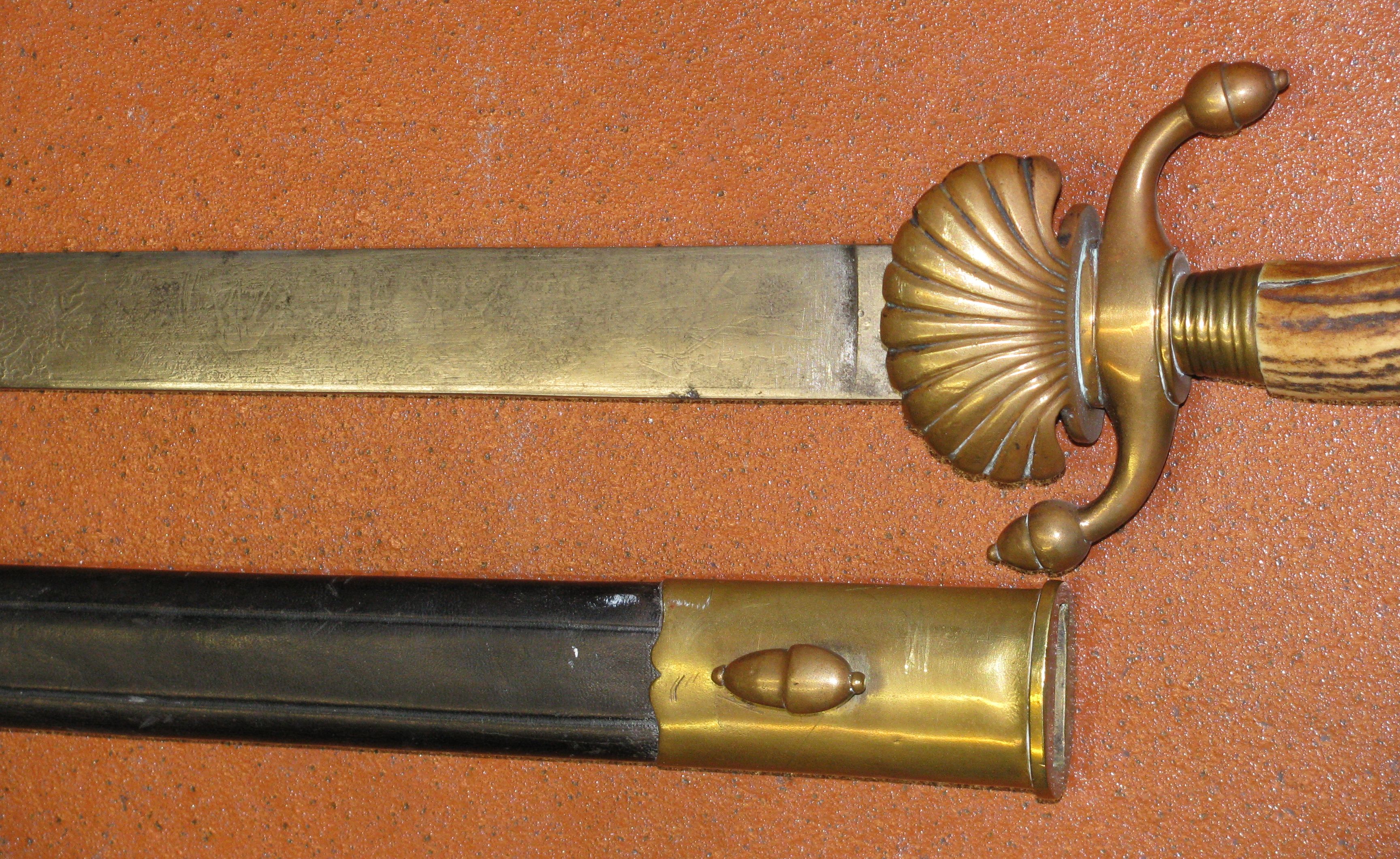 Zum Verkauf kommt ein älterer Hirschfänger mit Lederscheide