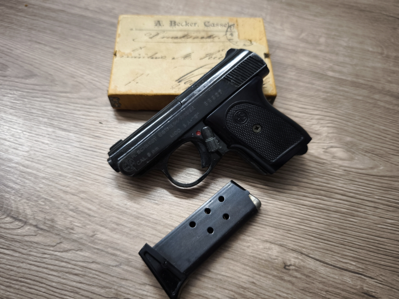 Zum Verkauf steht eine kompakte Schreckschusspistole der Marke Herbert Schmidt Ostheim/Rhön, Modell 5 A-"G". Ein robuster Klassiker in der schwarzen Standardausführung. Modell: HS Mod. 5 A. Kaliber: 8 mm Knall (8 mm k). PTB-Nummer: 100-69 (deutlich sichtbar). Zustand: Gebrauchter, funktionsfähiger Zustand mit altersbedingten Spuren am Finish. Lieferumfang: Pistole inklusive 1x Magazin. Bedingungen: Abgabe nur gegen Altersnachweis (18+). Privatverkauf: Keine Garantie, Gewährleistung oder Rücknahme.