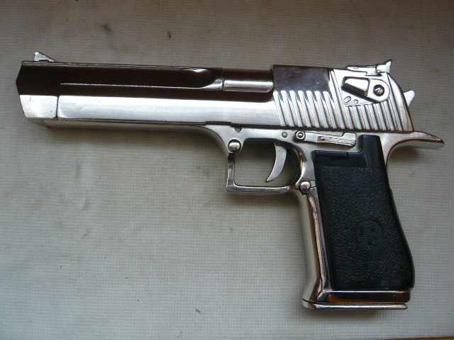 Schöne Dekowaffe des berühmten "Desert Eagle" Made in Israel. Denix-Fertigung. Schwere massive Waffe aus Metall hergestellt. Spannen, abschlagen und repetieren möglich.