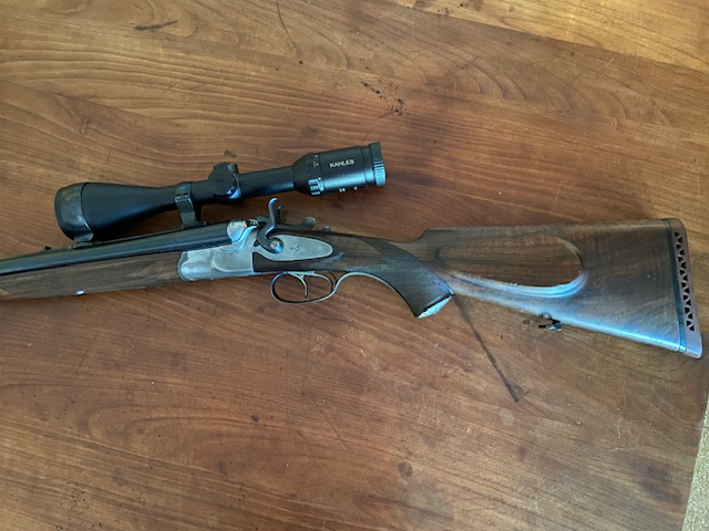 Kombination 6,5x57R und 20/76 Schrot. Verbaut ist im rechten Schrotlauf ein Fritz-Einstecklauf im Kaliber .17 Hornet.