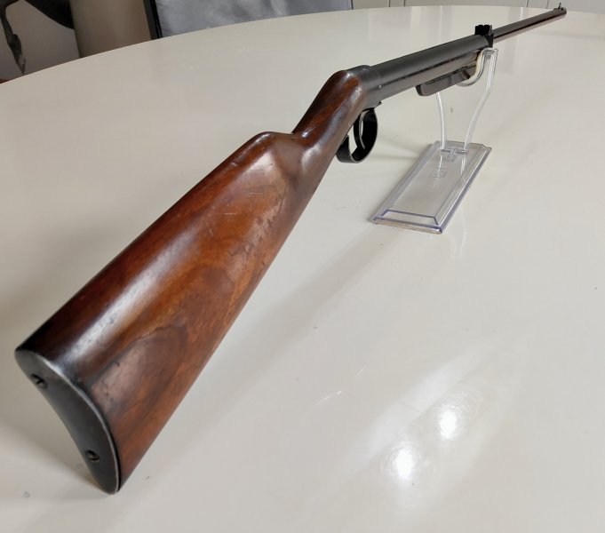 Zum Verkauf steht ein originales Haenel Modell 45 Luftgewehr aus der Vorkriegszeit, Kaliber 4,5 mm, in gutem, altersentsprechendem Zustand.