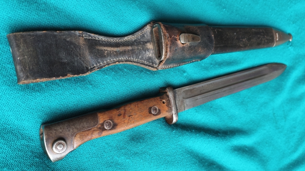 Seitengewehr 84/98 mit Scheide und Koppelschuh. Gestempelt W Krone 88 usw.