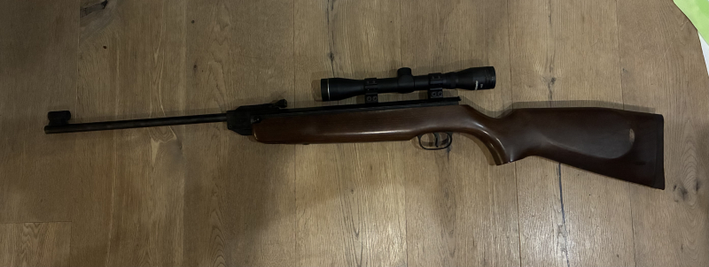 Ich biete hier ein älteres Luftgewehr der Firma Weihrauch an. Mit F im Fünfeck. Kaliber 4,5 mm. Mit Zielfernrohr 4 × 32 von der Firma Bushmaster. Die offene Visierung funktioniert auch einwandfrei. Am Schaft hinten ist eine Schramme. Das Gewehr ist voll funktionsfähig und schießt auch geradeaus. Ich hab keine Verwendung mehr dafür.