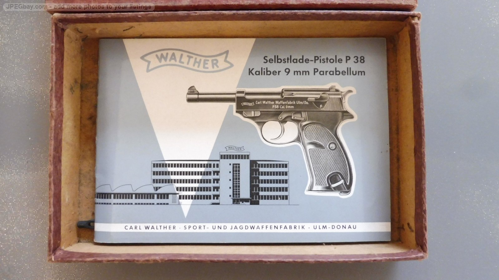 You are bidding on a used box with instruction manual for a Walther P38 pistol and metal cleaning rod.
