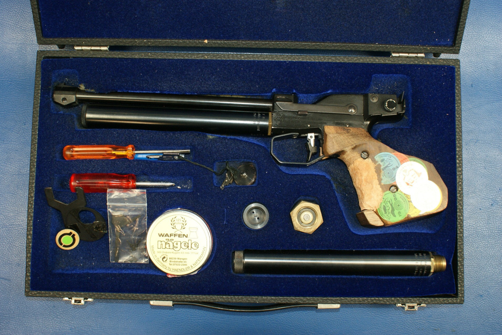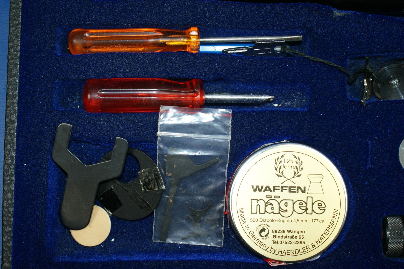Angebrochene Dose Diabolo-Kugeln mit vermutlich 100 restlichen Schuss.; Beiliegend ist der original Koffer.