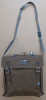 Aussen: 2 Schnallenverschlüsse, Ösen und 2 Karabinerhaken, Handgriff oben, daunter Fach für Namensschild,