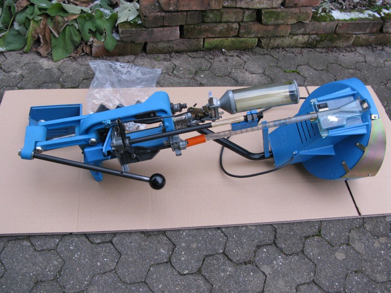 Artikelbeschreibung: Hier biete ich meine Progressivpresse an, da ich mit meiner Lee Turret zwar langsamer bin, aber der Kaliberwechsel schneller vonstatten geht und ich nicht den Munitionsverbrauch habe, für den man eine Progressivpresse braucht. Ich habe die Presse vor einiger Zeit von einem Schützenkameraden übernommen, der damit .357mag geladen hat. Darauf ist die Presse, so wie sie aufgebaut ist, auch eingerichtet. Das Aufweiten erfolgt nicht mit dem Pulvertrichter, da hier ein größerer verbaut ist, sondern eine Station später mit einer normalen RCBS Aufweitmatrize. Die anderen Matrizen sind von Dillon. Weiterhin dabei ist eine Hülsenhalteplatte Nr. 1 (Müsste für 8x57 und 45ACP passen, ohne Gewähr! Gerne selber googeln) und die zugehörigen Abstandsstifte, die die Hülsen am Rausfallen hindern, ich denke, daß der Vorbesitzer mit der Presse auch 8x57 geladen hat oder es tun wollte, denn es liegt ein Matrizensatz in 8x57IS von RCBS bei, ebenso diverse Umbauteile für die Hülsenzufuhr. Weiterhin der Zündhütchenzuführteller für Large ZH, das Magazinrohr für selbige sowie Pickrohre für beide Größen. Natürlich auch die Anleitung in Deutsch und Englisch und diverse Verschleißteile. Eine Zweite Kopfplatte mit Ständer, ein zweiter Pulverfüller. Es liegen zwei zusätzliche Pulverschieber bei, so daß für jeden Füller je ein kleiner und ein großer Schieber zur Verfügung steht. Der Zündhütchenwarn-Piepser hatte ein gebrochenes Gehäuse, welches ich geklebt habe, nun wird es mittels Kabelbinder statt Schraube am Magazinrohr befestigt. Wenn es läuft, ist man mit der Presse richtig schnell, die Pulverdosierung ist sehr genau und sehr sicher. Beim Hülsenmaterial und den Zündhütchen ist sie etwas pingelig. Wenn die Zündhütchen sehr schwer in die Zündglocke gehen, werden sie leicht mal zerdrückt. Vielleicht lässt sich hier mit Feineinstellung noch etwas erreichen, aber am wichtigsten sind gute Hülsen. Von TopShot muss ich hier abraten, Leader liefen sehr gut, Magtech soll auch gut sein. Vielleicht mag die Presse auch die sehr weichen Federal Zündhütchen nicht. Wird aber an diesem Stück nicht anders sein als an jeder anderen XL650