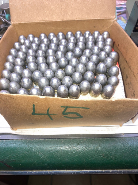 ca. 350 stk. Kal.45 ACP. Bleigeschosse mit zwei Fettrillen 225 grs, zustand siehe Foto.